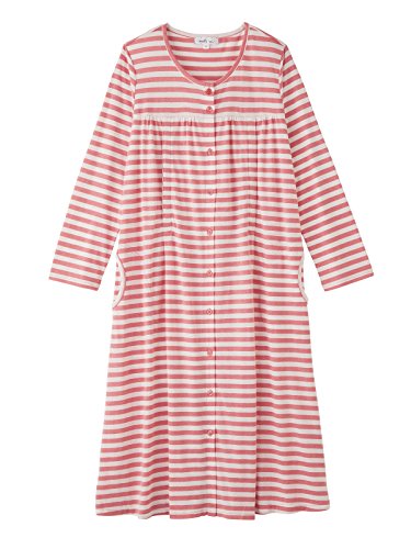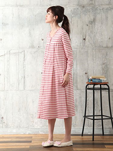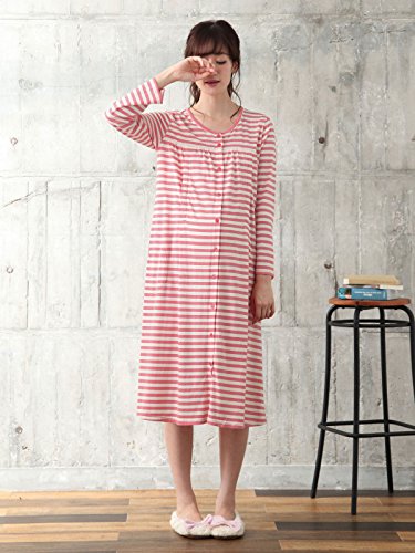 Angeliebe エンジェリーベ マタニティ パジャマ 授乳口付き T/C天竺 ボーダー ネグリジェ ガウン 妊婦服 産前 産後 前開き L ピンク 21960 21960270