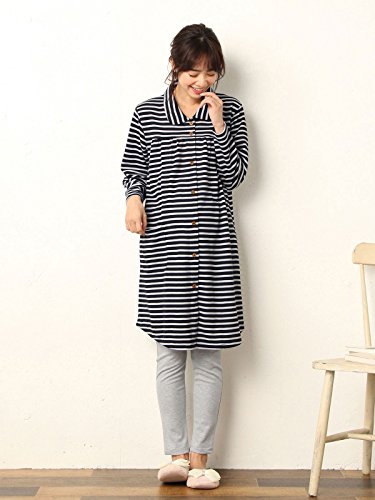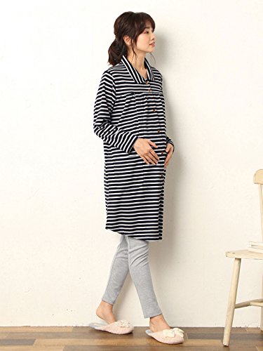 Angeliebe エンジェリーベ マタニティ パジャマ 授乳口付き ボーダー トップス & 腹まき タイプ パンツ セット 妊婦服 産前 産後 前開き L ネイビー 22065 22065170