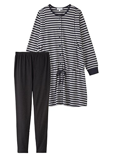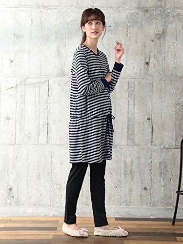 - ●【定番人気のボーダーパジャマは、ほどよいきちんと感でホームウエアとしても◎】ベーシックなボーダーワンピース&すっきりシルエットのパンツがセットに。きちんと感があるのでホームウエアとしても着られて、急な来客も安心です。やわらかな天竺素材で着心地抜群。