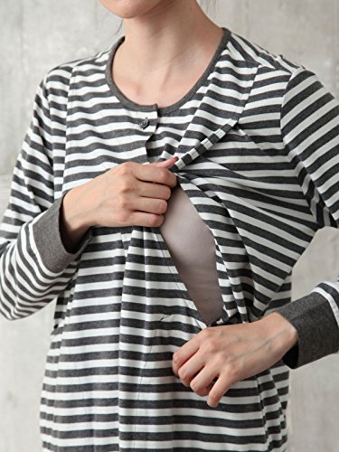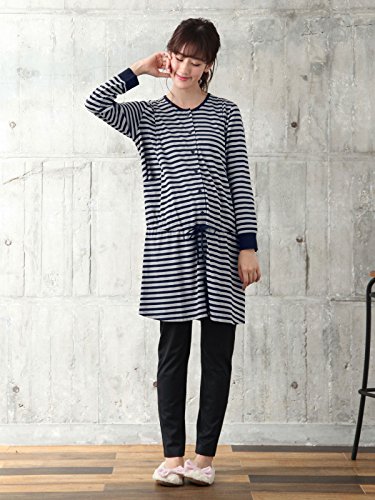 Angeliebe エンジェリーベ マタニティ パジャマ 授乳口付き T/C天竺 ボーダー ナイティ 妊婦服 産前 産後 前開き M ライト グレー (ライトグレー×ネイビー) 21962 21962160