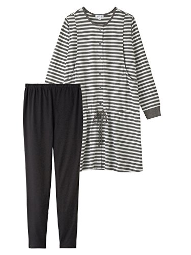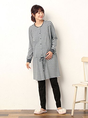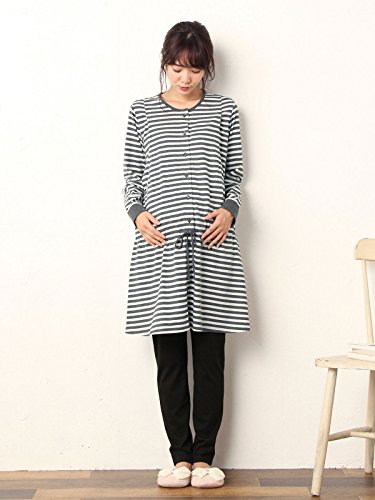 Angeliebe エンジェリーベ マタニティ パジャマ 授乳口付き T/C天竺 ボーダー ナイティ 妊婦服 産前 産後 前開き L チャコール (チャコール×オフ) 21962 21962270