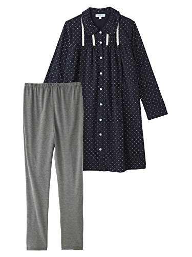 Angeliebe エンジェリーベ マタニティ パジャマ 授乳口付き T/C天竺 水玉 ナイティ 妊婦服 産前 産後 前開き L ネイビー 21959 21959370