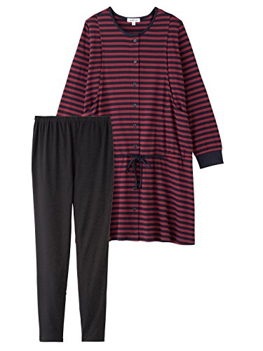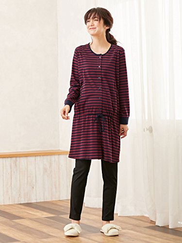 - ●【定番人気のボーダーパジャマは、ほどよいきちんと感でホームウエアとしても◎】ベーシックなボーダーワンピース&すっきりシルエットのパンツがセットに。きちんと感があるのでホームウエアとしても着られて、急な来客も安心です。やわらかな天竺素材で着心地抜群。