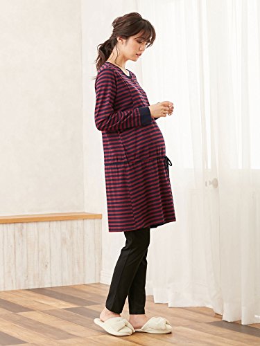 Angeliebe エンジェリーベ マタニティ パジャマ 授乳口付き T/C天竺 ボーダー ナイティ 妊婦服 産前 産後 前開き M ワイン (ワイン×ネイビー) 21962 21962360
