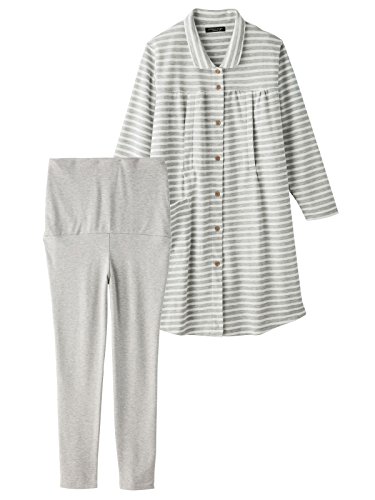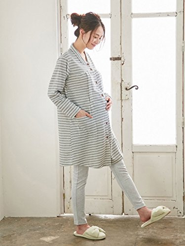 Angeliebe エンジェリーベ マタニティ パジャマ 授乳口付き ボーダー トップス & 腹まき タイプ パンツ セット 妊婦服 産前 産後 前開き L 杢 グレー 22065 22065270