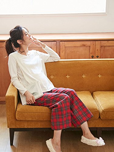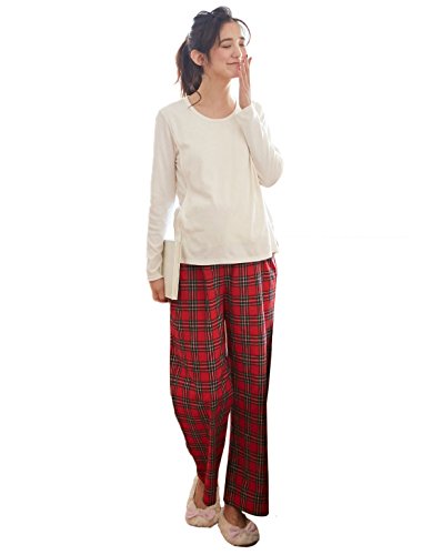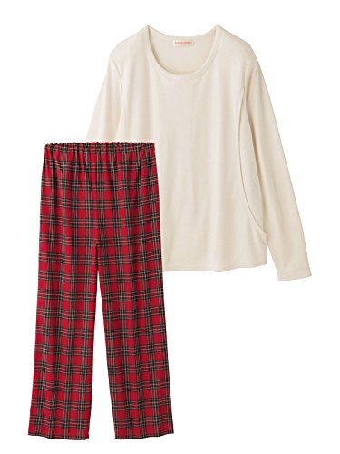 Angeliebe エンジェリーベ マタニティ パジャマ 授乳口付き スムース トップス & ネルチェック パンツ セット 妊婦服 産前 産後 長袖 S ~ M アイボリー × レッドチェック 22081 22081101