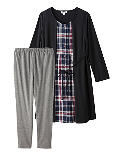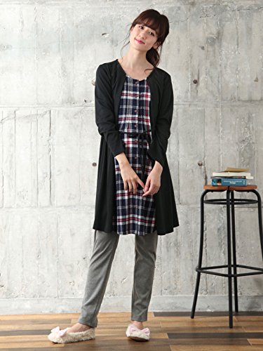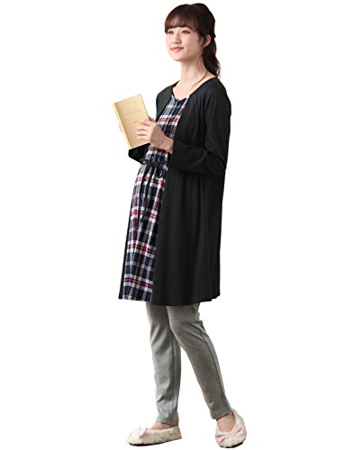 Angeliebe エンジェリーベ マタニティ パジャマ 授乳口付き スムース × ビエラ 起毛 チェック レイヤード風 ナイティ 妊婦服 産前 産後 長袖 前開き M ブラック 22110 22110260