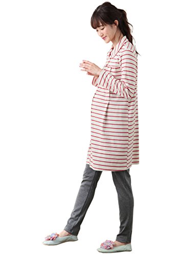 - ●【産前~産後まで使える授乳口付きスムースボーダー丸衿パジャマ】ふんわりやわらかなスムース素材。両サイドにボタンタイプの授乳口が付いています。長め丈なので入院時にも。細身のレギンスはアジャスターゴム付きでお腹の大きさに合わせて調節できます。