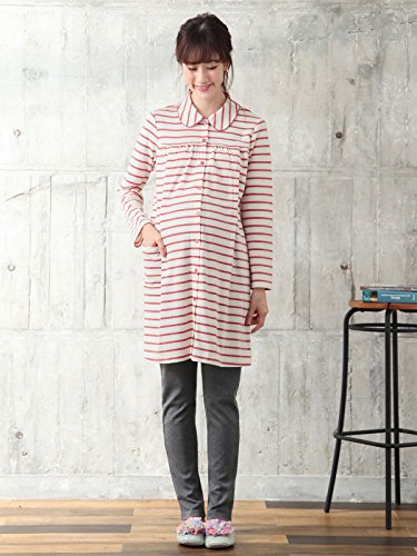 Angeliebe エンジェリーベ マタニティ 授乳口付き スムース ボーダー 丸衿 ナイティ 産前 産後 長袖 前開き M ピンク 22109 22109260