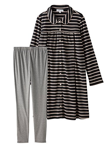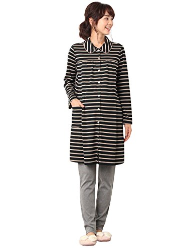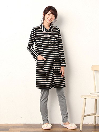 Angeliebe エンジェリーベ マタニティ 授乳口付き スムース ボーダー 丸衿 ナイティ 産前 産後 長袖 前開き L ブラック 22109 22109170