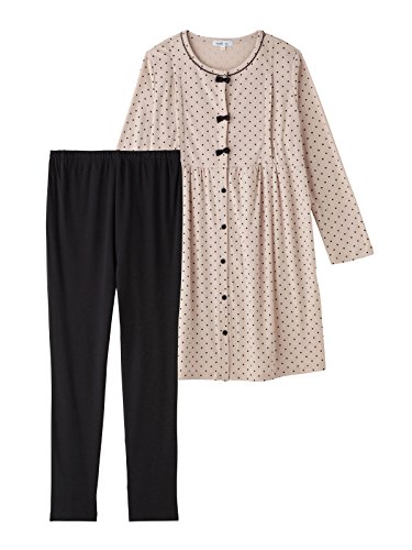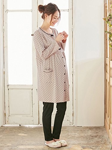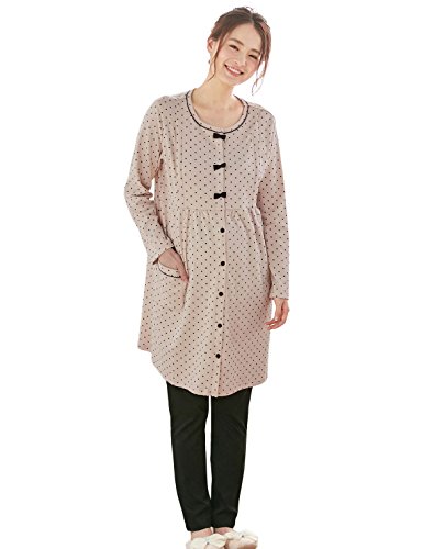 Angeliebe エンジェリーベ マタニティ パジャマ 授乳口付き ドット スムース リボン付き ナイティ 産前 産後 妊婦服 長袖 前開き M ~ L ベージュ 22176 22176102