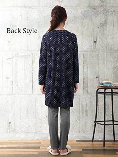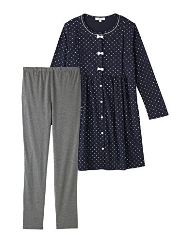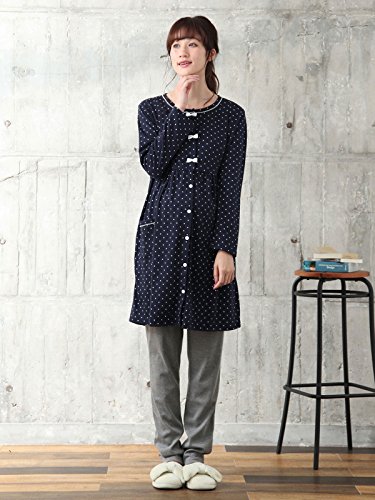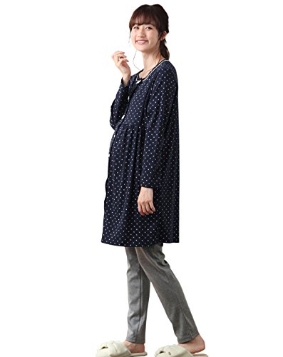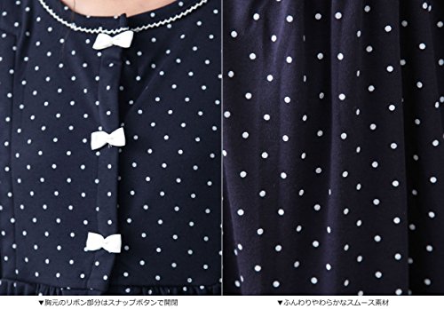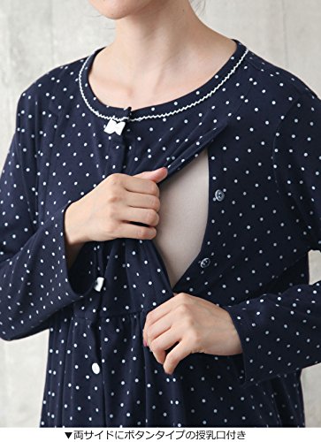 Angeliebe エンジェリーベ マタニティ パジャマ 授乳口付き ドット スムース リボン付き ナイティ 産前 産後 妊婦服 長袖 前開き M ~ L ネイビー 22176 22176202