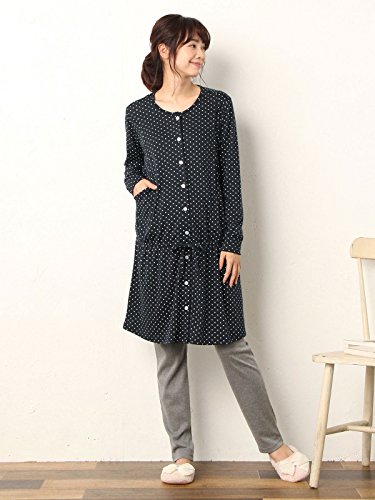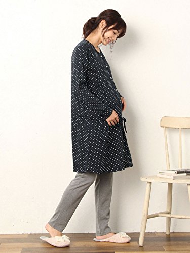 Angeliebe エンジェリーベ マタニティ パジャマ 授乳口付き ドット スムース ナイティ 妊婦服 産前 産後 前開き 長袖 M ~ L ネイビー 22175 22175202