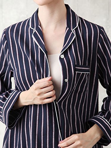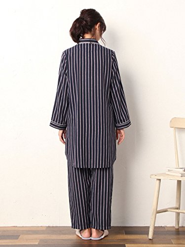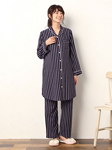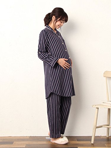 Angeliebe エンジェリーベ マタニティ パジャマ 授乳しやすい ストライプ 起毛 ナイティ 産後 も使える パンツ セット 妊婦服 産前 産後 前開き M~L ネイビー 22189 22189302