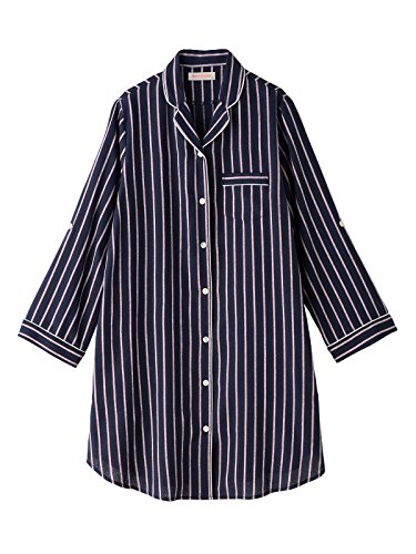 - ●【トレンドのメンズライクなストライプがおしゃれ。ロング丈で入院着にもぴったりです】きちんと感のあるレジメンタル風ストライプ。白いパイピングのアクセントで、キリッとした印象でやわらかい素材感に仕上げました。薄めの平織り生地でロングシーズン使えて便利。