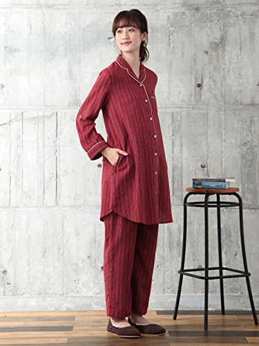 Angeliebe エンジェリーベ マタニティ パジャマ 授乳しやすい ストライプ 起毛 ナイティ 産後 も使える パンツ セット 妊婦服 産前 産後 前開き M~L エンジ 22189 22189202