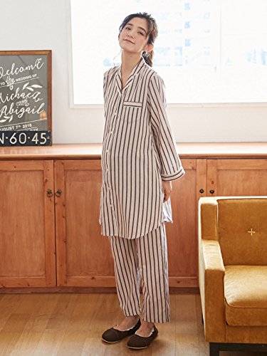 Angeliebe エンジェリーベ マタニティ パジャマ 授乳しやすい ストライプ 起毛 ナイティ 産後 も使える パンツ セット 妊婦服 産前 産後 前開き S~M ベージュ 22189 22189101