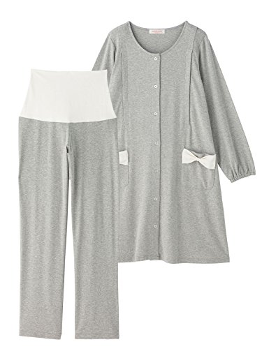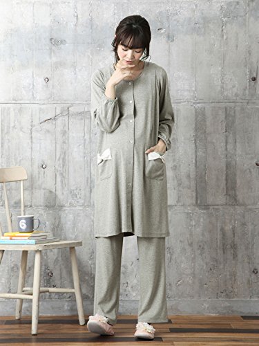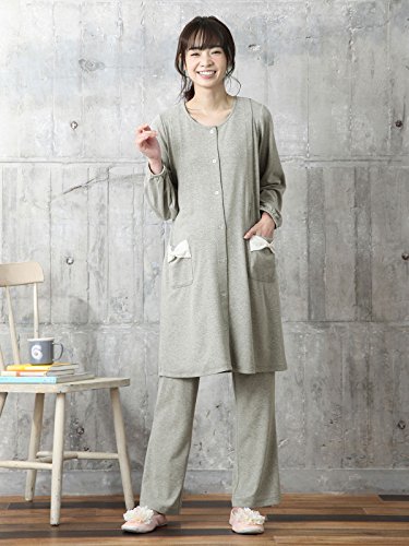 Angeliebe エンジェリーベ マタニティ パジャマ 授乳口付き ボーダー ワンピ × 産後も使える パンツ セット ナイティ 産前 産後 妊婦服 前開き フリー 杢グレー無地 22236 22236400