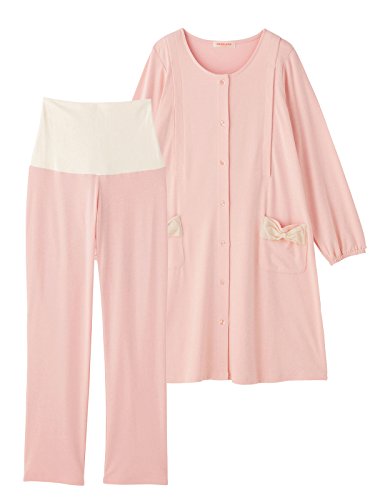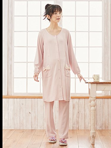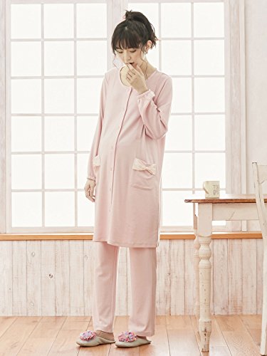 Angeliebe エンジェリーベ マタニティ パジャマ 授乳口付き ボーダー ワンピ × 産後も使える パンツ セット ナイティ 産前 産後 妊婦服 前開き フリー ピンク 無地 22236 22236300