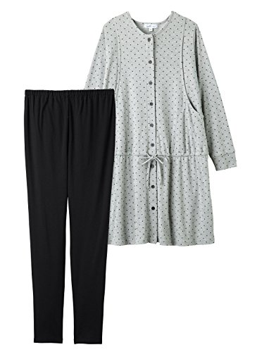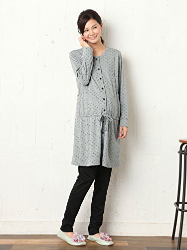 Angeliebe エンジェリーベ マタニティ パジャマ 授乳口付き スムース ドット ナイティ 妊婦服 産前 産後 前開き 長袖 L ライトグレー 22114 22114270