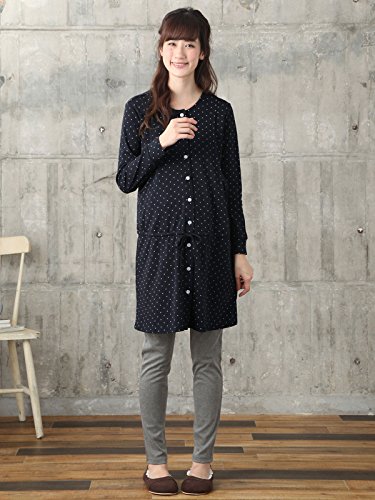 Angeliebe エンジェリーベ マタニティ パジャマ 授乳口付き スムース ドット ナイティ 妊婦服 産前 産後 前開き 長袖 L ネイビー 22114 22114370