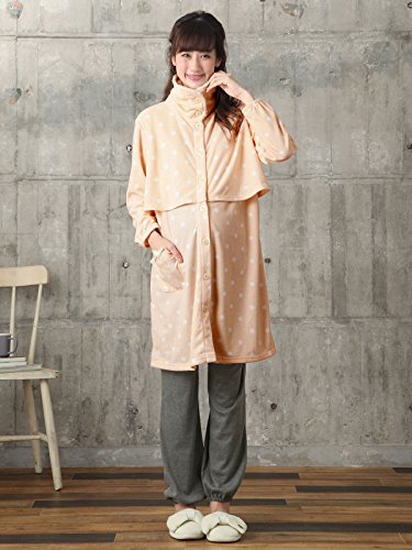 Angeliebe エンジェリーベ マタニティ パジャマ 授乳口付き 夜授乳に快適 パウダー パイル ドット ナイティ 妊婦服 産前 産後 長袖 前開き あったか L オレンジ 22118 22118170