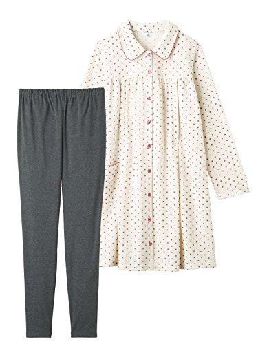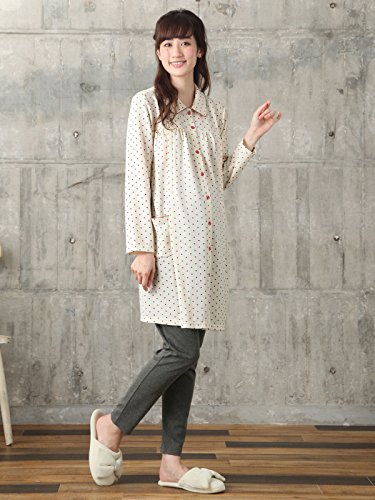 Angeliebe エンジェリーベ マタニティ パジャマ 授乳口付き ダンボール ドット プリント ナイティ 産前 産後 妊婦服 前開き 長袖 L アイボリー 22122 22122170