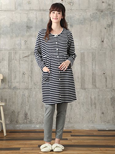 Angeliebe エンジェリーベ マタニティ パジャマ 授乳口付き あったか ニット キルト ボーダー ナイティ 産前 産後 妊婦服 前開き 長袖 M ネイビー 22121 22121360