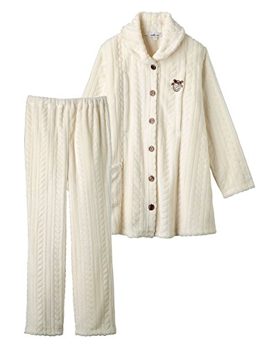 Angeliebe エンジェリーベ マタニティ パジャマ 授乳口付き あったか ケーブル柄 エンボス フリース ナイティ 産前 産後 妊婦服 長袖 前開き L アイボリー 22125 22125170