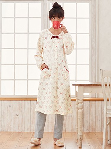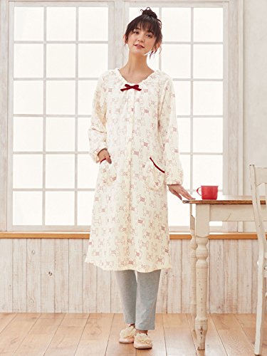 Angeliebe エンジェリーベ マタニティー パジャマ 授乳しやすい あったか ふんわり コットン キルト ニット ねこ プリント ナイティ 妊婦服 産前 産後 前開き 長袖 M~L アイボリー 22309 22309102