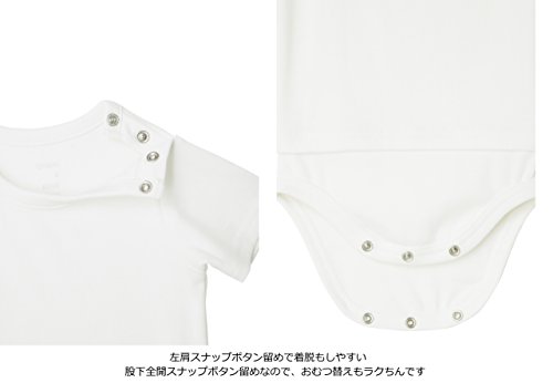 - ●【ふんわりやさしい肌触りのロンパース】伸びの良いフライス素材を使用。左肩スナップボタン留めで着脱しやすく、股下全開スナップボタン留めなので、おむつ替えもラクちんです。男の子ベビーは、1枚でもボトムと合わせても。女の子ベビーは、フリルパンツやチュールスカートを合わせてガーリーな印象に!エンジェリーベタグもアクセントです。