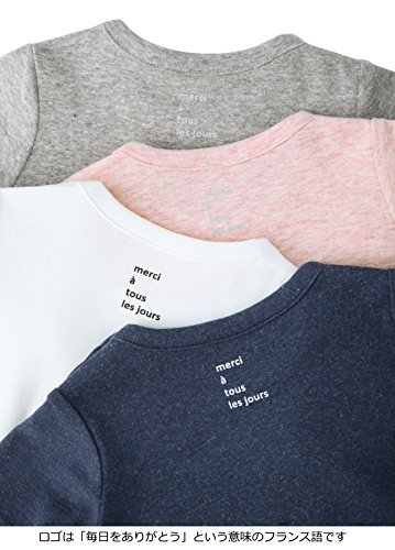 肌あたりが良く、伸びのあるフライス素材を使ったロンパースは、バックのロゴプリント「毎日にありがとう merci ? tous les jours」と言う意味の、小さく背中に入ったフランス語がポイントです。