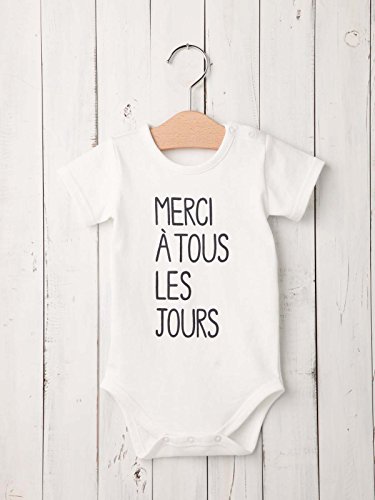 - ●【エンジェリーベオリジナルプリント ボディ】ANGELIEBEオリジナル、肌あたりの良い綿100%のボディには、「毎日にありがとう merci a tous les jours」と言う意味の手書き風ロゴがポイントです。男の子ベビーは、ボトムと合わせてカッコよく!女の子ベビーは、フリルパンツやチュールスカートを合わせてガーリーな印象に。