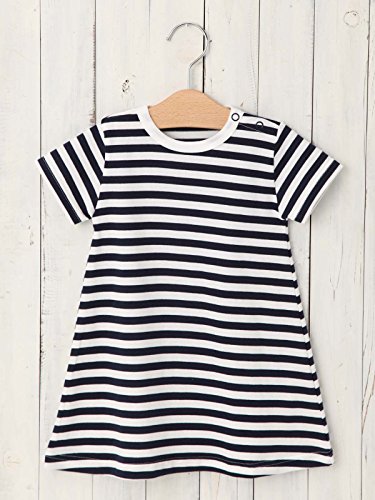 Angeliebe エンジェリーベ オリジナル 日本製 ベビー ワンピース ボーダー Tシャツ ワンピ 赤ちゃん 女の子 子供服 80㎝ ネイビー × シロ 50025032