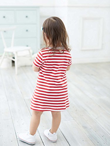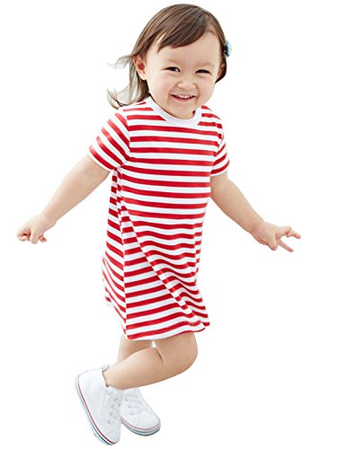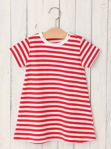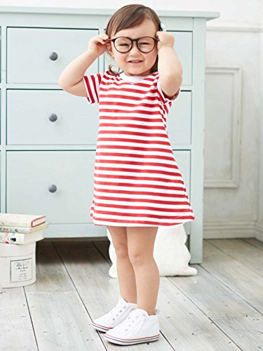 Angeliebe エンジェリーベ オリジナル 日本製 ベビー ワンピース ボーダー Tシャツ ワンピ 赤ちゃん 女の子 子供服 90㎝ レッド × シロ 50025023