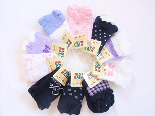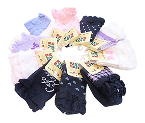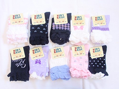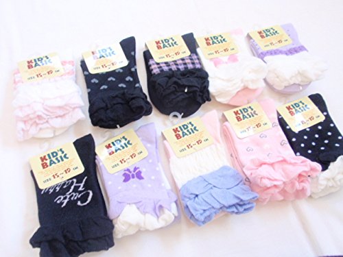 - 女児用・足首にフリルデザインのピンク~パープル~黒系・パステルカラー10足セットです。
