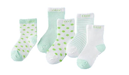 ( Angel Kids ) シンプル カラー 靴下 ジュニア 5足 セット キッズ クルー丈 カラフル スクール (16-19㎝★ライトグリーン.)