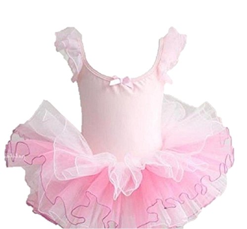 ( Angel Kids ) キッズ バレエ 練習用 レオタード 衣装 背中 クロス タイプ レース フリル ダンス お姫様 (95㎝★ピンク) …