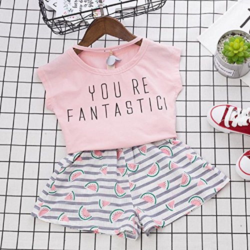 ( AngelKids ) 半そで Tシャツ & ショートパンツ セットアップ キッズ 子供服 ピンク スイカ模様 (90㎝)…