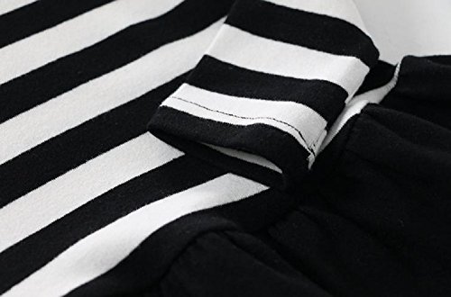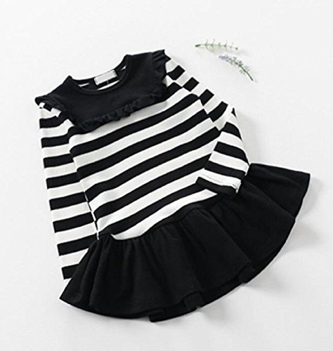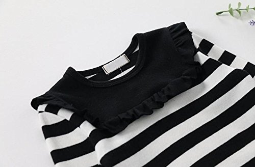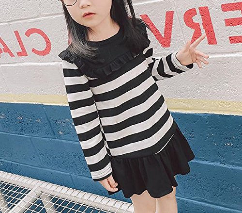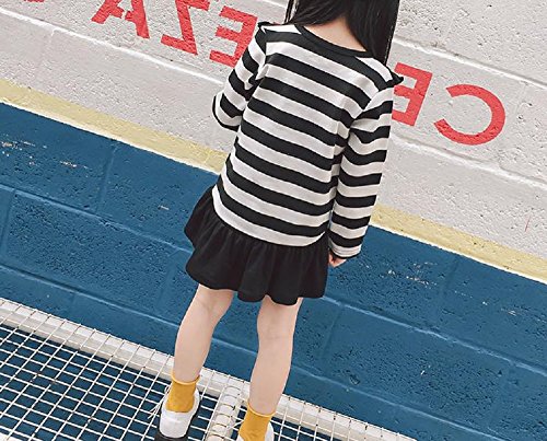 ( AngelKids ) 裾フリル ボーダー ミニ ワンピース 長袖 スウェット カットソー キッズ ジュニア サイズ お出かけ (100㎝, ブラック)