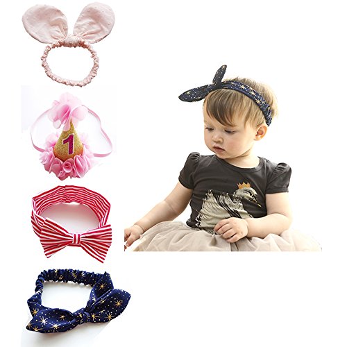 Angelland エンジェルランド キッズ 女の子 リボン コットン レディース 高い弾力ゴム ヘアアクセサリー 髪飾り 髪留め 兎耳 蝶結び 柔らかい生地 ターバン おしゃれ 人気 洗顔 メイク用 記念撮影 0-36月 赤ちゃん ベビー 子供 ギフト(4個)