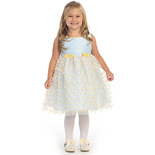 クラッシーな魅力を持つ天使衣服この素晴らしい作成、オプションのダッシュのパーティーや特別な機会に最適です。愛らしいポリ玉糸ドレスリボンメッシュ上のオーバーレイスカートでできています。バックが結ぶリボン、ジッパーエンクロージャを選択します。膝の長さが表示されます。袖なしのガウンは、魅惑的なブルー・イエローの色の組み合わせを選択することができます。アメリカ製の輸入。