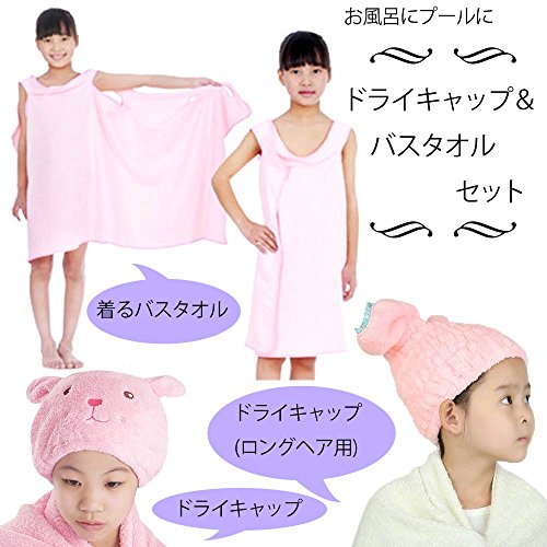 - お風呂やプールのお着替えにお役立ちな ドライキャップ&バスタオルのセットをご用意いたしました。