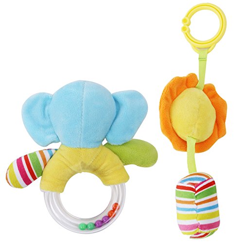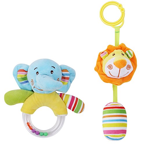 【Ani Mam Kids】 ベビーキッズ 音が鳴る 動物 アニマル人形 ベビー知育 ふりふり フワフワ おもちゃ 2点セット (ゾウ&ライオン)