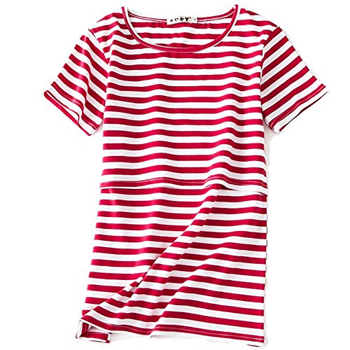 【Ani Mam Kids】マタニティ 半袖 レディース Tシャツ 授乳口 付 産前産後 ボーダー シャツ 授乳服 春 夏 (XL, レッド)