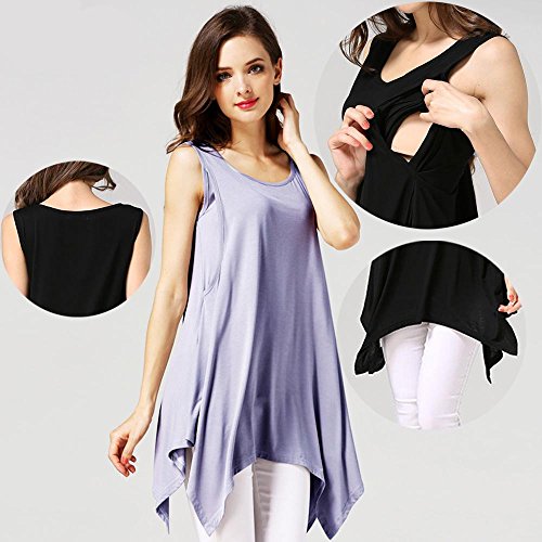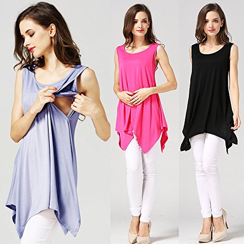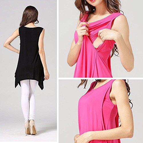 【Ani Mam Kids】レディース カットソー キレイめ マタニティ 授乳服 産前産後 タンクトップ チュニック 授乳口付 オールシーズン トップス (XL, ピンク)