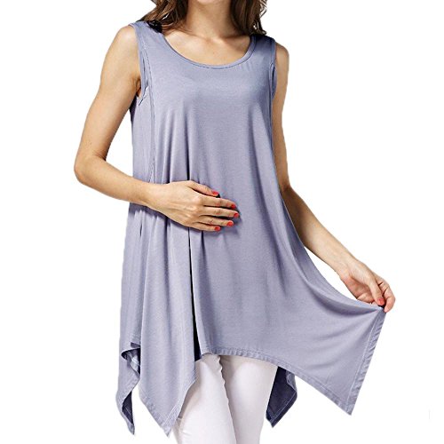 【Ani Mam Kids】レディース カットソー キレイめ マタニティ 授乳服 産前産後 タンクトップ チュニック 授乳口付 オールシーズン トップス (L, グレー)