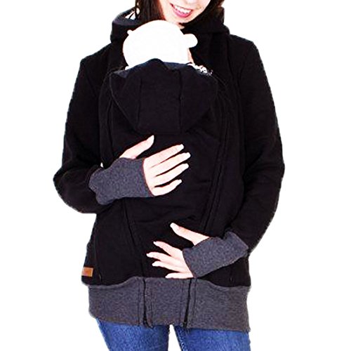 【Ani Mam Kids】カンガルーパーカー マタニティ ジャケット フード 上着冬の妊婦キャリー赤ちゃん妊娠服 (L, ブラック)