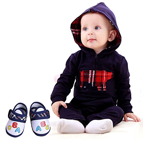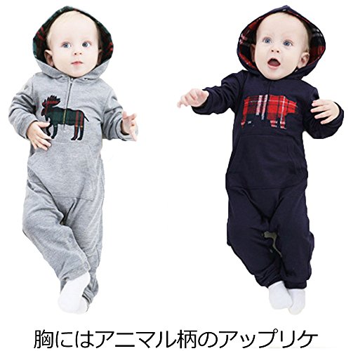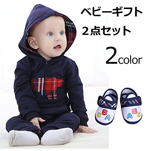 - シンプルながらチェックのアニマル柄がおしゃれなオーバーオールに アルファベットのデザインがかわいい♡シューズをセット