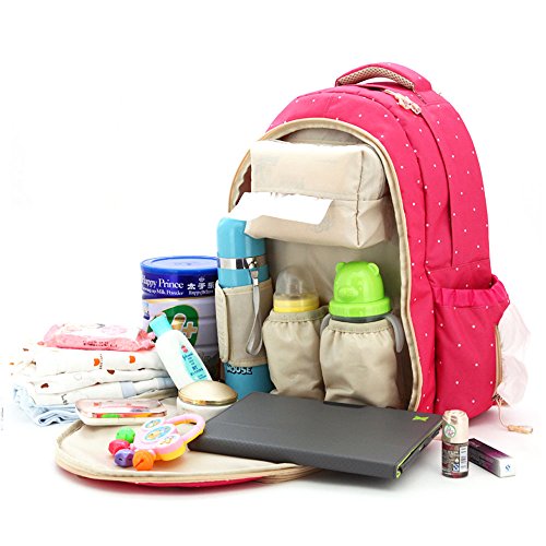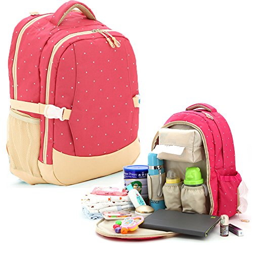 【Ani Mam Kids】 おしゃれマザーバッグ 防水素材 大容量 多機能 超軽量 リュック (ピンク水玉)